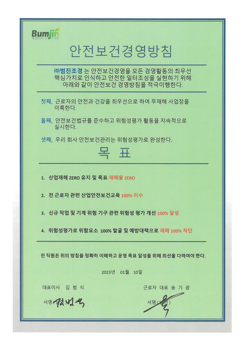 안전보건경영방침